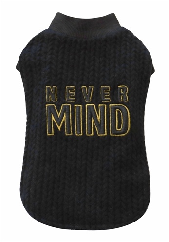 De Croci Hondentrui Nevermind Zwart van 40 cm is een stoere hondentrui van zachte fleecewol, met gouden ingenaaide print, kraagje en mouwtjes. Heerlijk voor binnenshuis en droge, minder koude dagen thuis! Deze trui heeft een klassiek doch stoere uitstraling met zijn banen geweven fleecewol. De gouden ingenaaide print met de tekst 'nevermind' geeft hem toch weer even een hedendaags tintje. De trui is voorzien van een kraagje en mouwtjes en heeft een fijne pasvorm door de banden bij de achterpoten en het elastisch buikdeel. Te gebruiken met halsband en looplijn.
