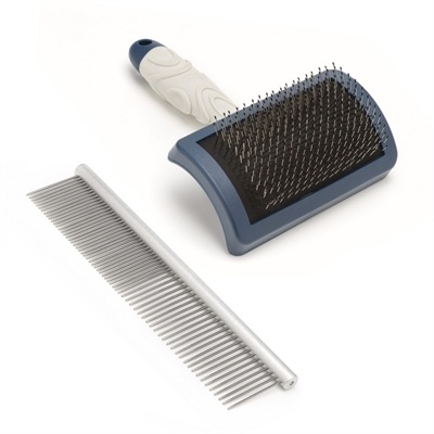 - Kam voor het verwijderen van klitten en slickerborstel voor het verwijderen van losse haren