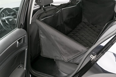 De Trixie Autobeschermdeken Zwart van 155X130 cm is een beschermdeken voor de hond, geschikt voor de achterbank van de auto, met anti-slip onderkant en hoge zijkanten. De ultieme bescherming voor jouw auto! Als jouw hond op de achterband meereist in de auto, wil je deze natuurlijk beschermen tegen haren, zand, vocht en vuil. Deze handige autobeschermdeken van Trixie is daar speciaal voor ontworpen. Deze deken is gemaakt van polyester, met een anti-slip onderzijde die ervoor zorgt dat het deken stevig op zijn plek blijft in de auto. Ook zijn er lussen gemaakt voor om de hoofdsteunen van zowel de voor- en achterstoelen voor meer stabiliteit; bovendien zorgen de hoge zijkanten voor extra bescherming van de deurbekleding. De zijkanten kunnen opengeritst worden en naar beneden geklapt om het in- en uitstappen te vergemakkelijken. Er zijn uitsparingen in het deken aangebracht om de veiligheidsriem van de hond vast te maken en je kunt het deken in tweeën splitsen, zodat er nog iemand op de achterbank kan zitten. Het deken is waterdicht en beschermt jouw bekleding zo ook op regenachtige dagen!