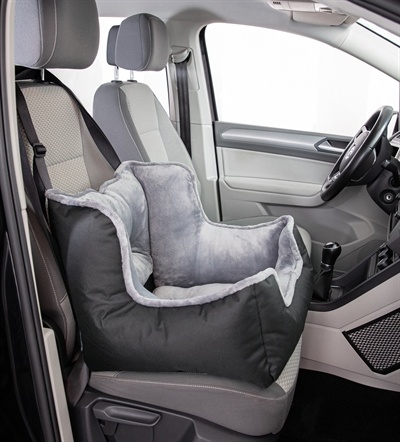 De ruime stoel is voorzien van een riem waarmee je het stevig vastmaakt aan de stoel van de auto. Daarnaast is de autostoel voorzien van een uitsparing om de gordel bij de hond om te doen. Naast veiligheid is er ook aan comfort gedacht: de autostoel is voorzien van een inzet-kussentje van teddystof.