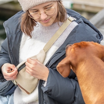 De Trixie Be Nordic Heuptas Zand 24X8X11 cm is een tas dat gedragen kan worden als een heup- of schoudertas. De riem is verstelbaar van 50 tot 165 cm. De tas is aan de buitenkant voorzien van een D-ring waar je bijvoorbeeld een fluitje of clicker aan kan hangen. De binnenkant is uitgevoerd met een hoofdvak met scheidingswand en een apart vak met rits. Daarnaast is de binnenkant gevoerd met waterdicht materiaal en af te sluiten met een rits. De tas heeft een prachtige canvas look en feel.
