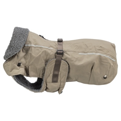 De Trixie Hondenjas Rouen Zand 48 cm is de perfecte hondenjas voor korte, compacte honden zoals mopshonden en bulldogs! De jas is gemaakt van hoogwaardig polyester en biedt optimale bescherming en comfort. De uitneembare voering van pluche zorgt ervoor dat je hond het altijd lekker warm heeft, terwijl de reflecterende elementen de zichtbaarheid in het donker verbeteren. De elastische buikslab beschermt tegen kou en vuil en dankzij de klittenbandsluiting in het borstgedeelte is de jas eenvoudig aan en uit te trekken. De buikriem is voorzien van een gesp. De beenlussen voor de achterpoten zijn verstelbaar. De trekkoorden op het ruggedeelte en wijde pasvorm zorgt ervoor dat de jas perfect aansluit zonder te knellen bij compacte hondenrassen. Bovendien is de jas waterafstotend en kan hij gemakkelijk gewassen worden op 30 graden. Met deze handige waterdichte jas van Trixie weten jullie elk weer te trotseren.