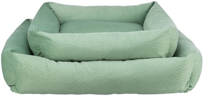 De Trixie Hondenmand Alena Hoekig Saliegroen 80X60 cm is een origineel hondenbed van lichte velours stof met vast geïntegreerd kussen en slipvaste onderkant.