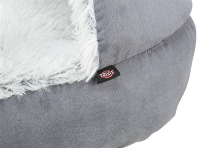 De Trixie Donut Harvey Grijs/Wit-Zwart 70 cm is een comfortabele mand voor de hond of kat, met vulling, kussen en bekleed met velours en pluche. Een heerlijke mand om warm en knus in weg te kruipen! Deze mand geeft jouw dier door de ronde, gesloten vorm een veilig en geborgen gevoel. De mand leent zich perfect om lekker in weg te kruipen, vooral door de combinatie met heerlijk zacht langharig pluche en velours aan de buitenkant. Voor extra comfort is de mand voorzien van polyestervlies/schuimrubber vulling en een vast geïntegreerd kussen. Natuurlijk uitgevoerd in moderne kleurstelling, zodat de mand in elk interieur past!