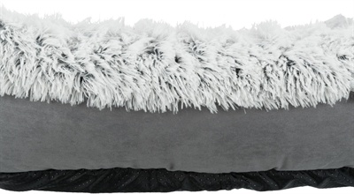De Trixie Mand Harvey Grijs / Wit 60 x 50 cm is een zeer comfortabele mand voor de hond of kat, met een onweerstaanbaar zachte bekleding van velours/langhaar pluche en geïntegreerd kussen. Nergens droomt jouw hond of kat zo lekker weg als in deze leuke mand! De Trixie Harvey mand is heerlijk zacht gevoerd met langharig pluche en heeft een buitenkant gemaakt van chique velours. Door het stevig geïntegreerde kussen en de opstaande rand heeft jouw dier voldoende steun en kan het heerlijk opgekruld in de mand slapen. Om schuiven bij het in- en uitstappen te voorkomen, is deze mand voorzien van een slipvaste onderkant.