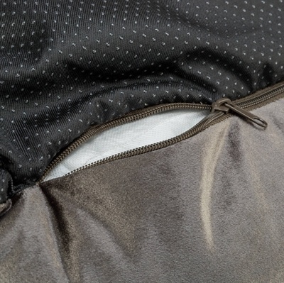 De afneembare hoes is gemaakt van gerecycled materiaal kan gewassen worden in de wasmachine op 40 graden, de vulling kan met de hand gewassen worden. De antislip onderkant en het vast geïntegreerde kussen zorgen ervoor dat de mand stevig blijft liggen.