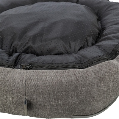 De Trixie Vital Hondenmand Lennox Rond Grijs is een orthopedische mand die speciaal ontworpen is voor maximaal ligcomfort. Dankzij de combinatie van visco-elastische schuimvlokken (met memory-effect) en een stabiele randvulling van schuimrubber en polyestervezel krijgt je hond optimale ondersteuning tijdens het rusten. De hoes van meubelstof (Chenille) voelt zacht aan, is afneembaar en wasbaar (op 40 °C), terwijl de slipvaste onderkant ervoor zorgt dat de mand goed op zijn plek blijft liggen. Ideaal voor honden die houden van een knusse, comfortabele slaapplek.